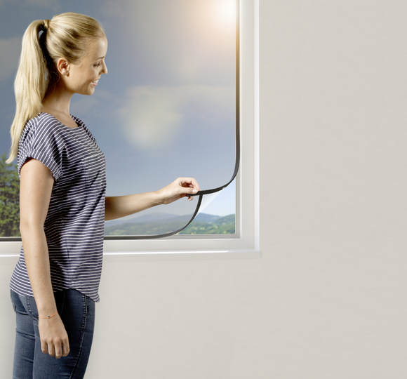 Überzeugen auch Sie sich von der simplen Innenmontage des Fliegengitters mithilfe des selbstklebenden Flausch- und Klettbandes. Individuell auf die Größe Ihres Fensters kürzbar, schützt diese preiswerte Alternative Innenräume vor lästig surrenden und stechenden Insekten. Gleichzeitig bleibt die Hitze draußen - selbst bei geöffnetem Fenster. Das speziell beschichtete Gewebe reduziert die Erwärmung des Innenraums, indem es die Sonnenstrahlen reflektiert.