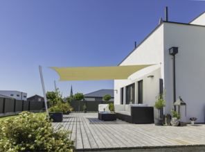 Sonnensegel mit Seilspanntechnik sind perfekt für die Beschattung von Terrassen und Wintergärten geeignet.