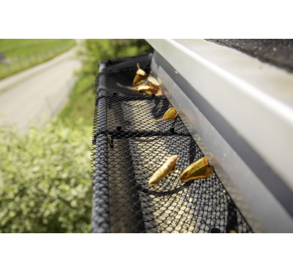 Verstopfen herabfallendes Laub, Zweige und anderer Schmutz häufig die Dachrinnen an Ihrem Haus? Besonders im Herbst ist das leider keine Seltenheit. Die anschließende Reinigung ist mühsam und hält oft nur kurz an. Mit einer Dachrinnen-Abdeckung lässt sich dieses Problem dauerhaft lösen. Einmal fixiert, schützt sie langfristig vor hereinfallendem Laub und Schmutz. Das flexible PE-Netz hält Wind und Wetter stand, somit ist es für den Einsatz rund um das Jahr geeignet. Das 6 Meter lange Netz kann individuell auf die benötigte Länge zugeschnitten werden und wird anschließend mit Befestigungsklammern direkt an der Dachrinne befestigt. Die Klammern sind aus biegsamem Kunststoff, was die Fixierung an allen herkömmlichen Dachrinnen ermöglicht.