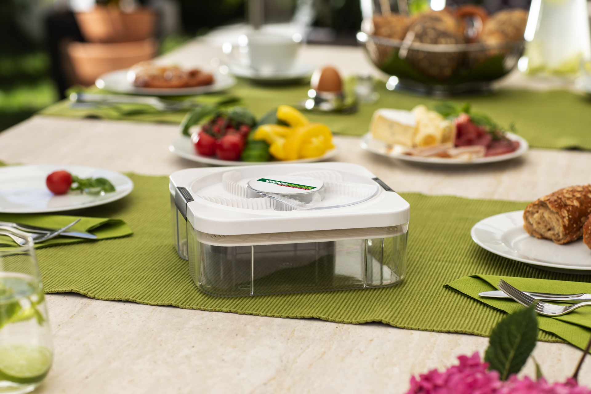 Die Falle ist akkubetrieben. Ein USB-Kabel, inklusive Netzteil, ist im Lieferumfang enthalten. Der Lockstoff für die elektrische Fliegenfalle ist frei wählbar. Besonders gut eignen sich Bier oder die Windhager Fliegenköder, da diese keine für den Erhalt des Ökosystems notwendige Bienen anlockt. Für den überdachten Außenbereich kann unter anderem Trocken-Fischpulver verwendet werden. Der Lockstoff wird einfach auf dem Drehteller der Falle platziert. Die angelockten Fliegen werden dann durch langsame Umdrehungen in das Innere der Falle gelockt und sind dort gefangen. Mit der mitgelieferten Reinigungsbürste lässt sich die Fliegenfalle ganz einfach säubern.