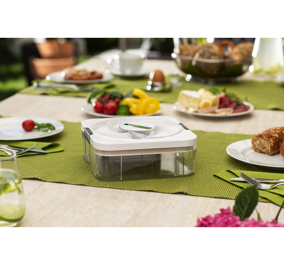 Kaum steht das Essen auf dem Tisch, sind auch nervige Fliegen meist nicht weit. Die elektrische Fliegenfalle FLY CATCHER + fängt die ungebetenen Gäste mithilfe eines ausgeklügelten Mechanismus ein, ohne dass Sie ihnen mit einer Fliegenklatsche hinterherjagen müssen. Die Falle funktioniert mit natürlichen Lockstoffen (nicht im Lieferumfang enthalten) und kommt somit ganz ohne Chemie aus. Das ist nicht nur kinder- und haustierfreundlich, sondern schont auch die Umwelt. Der FLY CATCHER + ist ideal für die Anwendung in Innenbereichen, Vorratskammern und überdachten Außenbereichen.