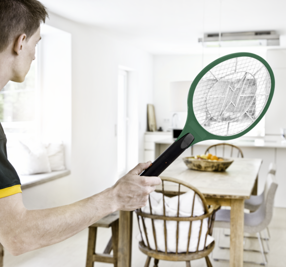 Fluginsekten wie Fliegen, Mücken, Motten und Wespen können ziemlich nervig sein. Wenn das Essen am Tisch steht oder der Griller gestartet ist, sammeln sich oft unzählige von ihnen an. Eine elektrische Fliegenklatsche schafft hier Abhilfe, ohne den Insekten lange hinterherjagen zu müssen. Mit nur einer Berührung der elektrisch betriebenen Fliegenklatsche werden die Insekten gift- und chemiefrei erledigt. Das Spannungsdrahtgitter ist elektrisch geladen und gibt bei Kontakt mit einem Insekt einen kleinen elektrischen Schlag ab. Von diesem Schlag werden die Fluginsekten sofort getötet. Die Fliegenklatsche in sportlicher Racket-Form ist einfach in der Handhabung und äußerst effektiv. Auch auf Ausflügen wie beim Angeln oder Zelten ist die ACTION RACKET stets ein guter Begleiter.