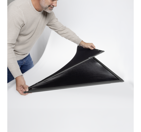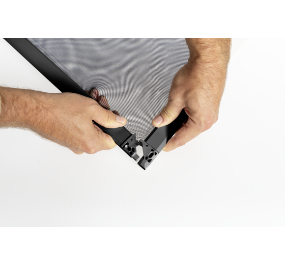 Einfach auspacken, auffalten, Ecken zusammenstecken, Rahmen ausziehen und im Fenster einhängen – fertig!
