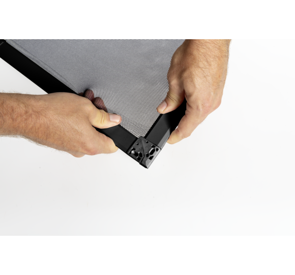 Der hochwertige, vormontierte Aluminium-Teleskoprahmen lässt sich in wenigen Minuten montieren – ohne Messen, Zuschneiden oder Bohren.
