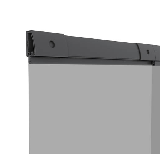 - Lamellenvorhang aus vier überlappenden Fiberglasbahnen