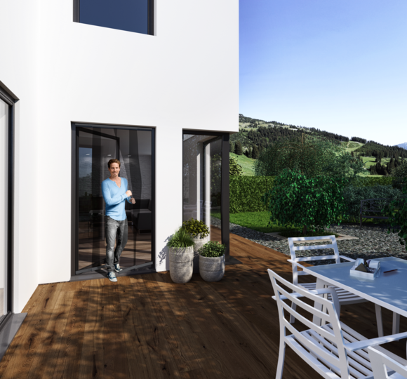 Ganz einfach – mit diesem praktischen Türvorhang! Nach der Saison kann der Vorhang leicht abgenommen und eingewintert werden.