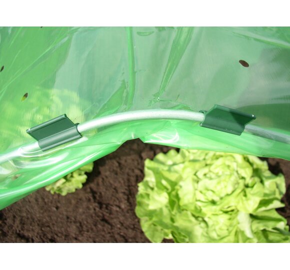 - Komplett-Set mit 8 Tunnelbögen, 1 Folie 10x1,5 m, 40 Klammern und 2 Heringen