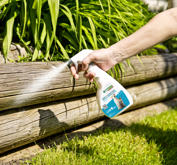 Zunächst ist es wichtig, dass die von Hunden oder Katzen frequentierten Stellen von tierischen Verschmutzungen gereinigt werden. Nur so kann das Spray seine volle Wirksamkeit entfalten und der Geruch wird nicht verfälscht. Die Flüssigkeit ist bereits gebrauchsfertig gemischt und kann dank Sprühflasche direkt aufgetragen werden. Das Spray ist für das Besprühen von beispielsweise Hecken, Hochbeeten oder Blumenkisten geeignet. In der ersten Woche sollten die Stellen täglich großzügig eingesprüht werden. Danach können Sie die Anwendung bei Bedarf von Zeit zu Zeit wiederholen.