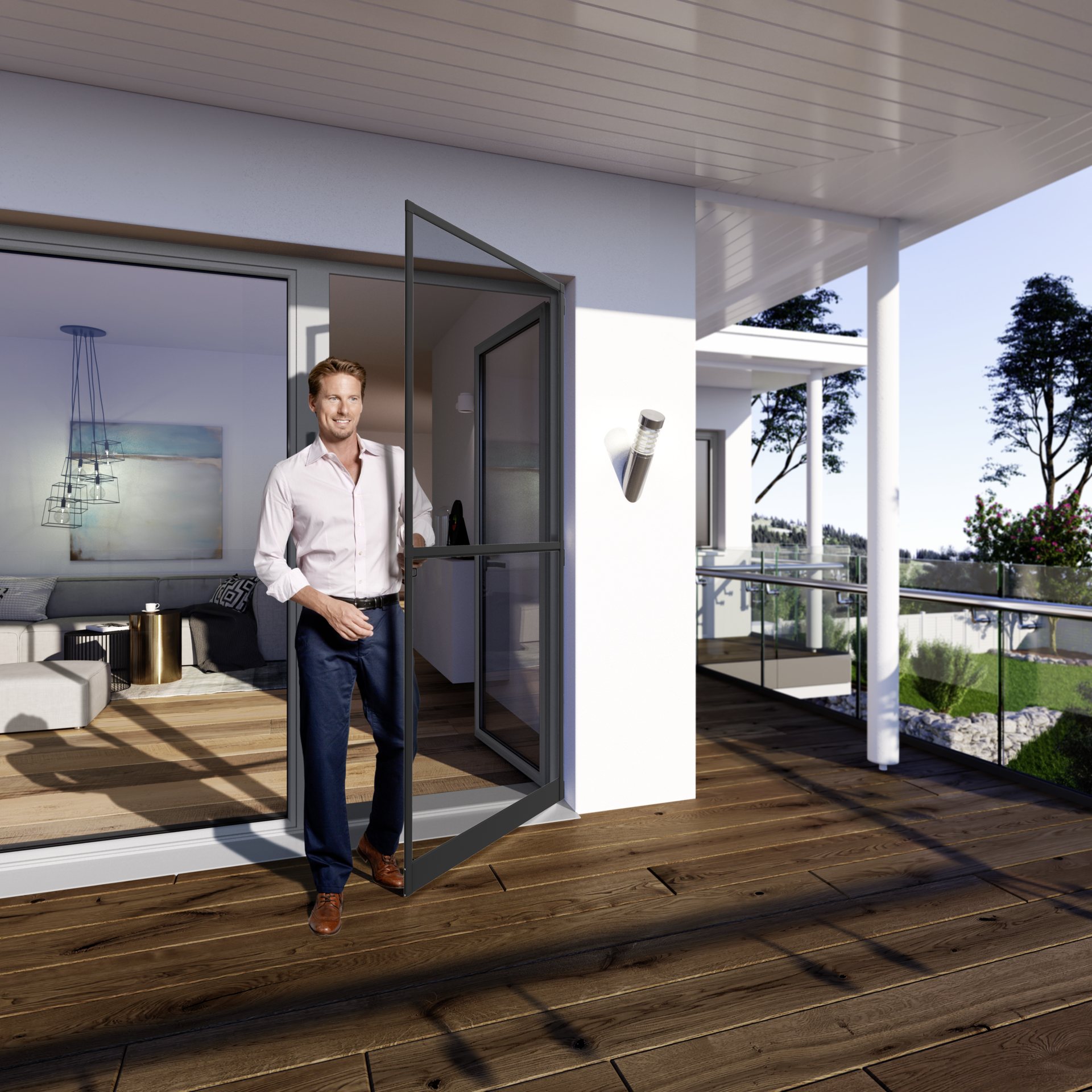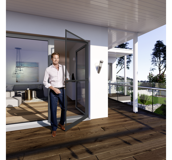 Mit nützlichen Fliegengittern vor Fenster und Türen können Sie die Zeit zuhause ohne nervige Insekten genießen. Die Insektenschutztür PLUS von Windhager schwingt bequem nach außen auf und schließt sich von selbst. So ist der Durchgangsbereich auf Balkon oder Terrasse immer optimal geschützt.