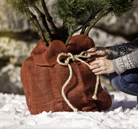 Wenn die Tage wieder kälter werden, müssen auch Ihre Pflanzen gut eingepackt werden. Topfpflanzen im Garten, auf Terrasse oder Balkon lassen sich mit einem Wintervlies, einer Kokosmatte oder Noppenfolie schnell bereit für die kalte Jahreszeit machen. In Kombination mit einem Jutesack sorgen Sie nicht nur für gut geschützte Pflanzen, sondern schaffen auch noch einen dekorativen Hingucker im winterlichen Garten. Stellen Sie dafür den mit einem Winterschutz umwickelten Topf in den Jutesack und binden Sie diesen oben mit dem integrierten Band zu. Passende Wintervliese und weiteren Winterschutz finden Sie ebenfalls im Sortiment von Windhager.