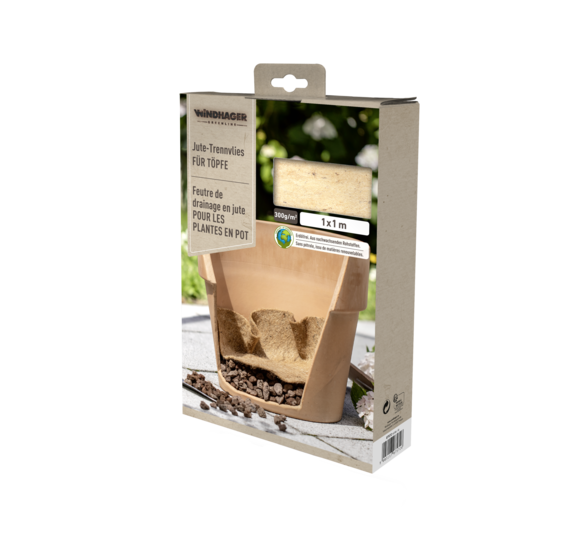 Pflanzen auf Balkon und Terrasse sind zumeist in einem Blumentopf oder Pflanzkübel zuhause. Ablauflöcher und eine Drainage im Pflanzgefäß sind ein Muss, um die berüchtigte Staunässe für die Wurzeln zu vermeiden. Hier kommt die robuste Jute als „Trenn- und Filtervlies“ optimal zum Einsatz. Es trennt die Blumenerde vom Drainagematerial (z. B. Blähton), schützt damit die Drainageschicht vor Verschmutzung mit Erde und die Wasserablauflöcher im Pflanztopf bleiben frei. So kann überschüssiges Gieß- und Regenwasser immer gut abfließen. Außerdem wird das Umtopfen der Pflanzen erleichtert, wenn sich die einzelnen Schichten nicht vermischen.