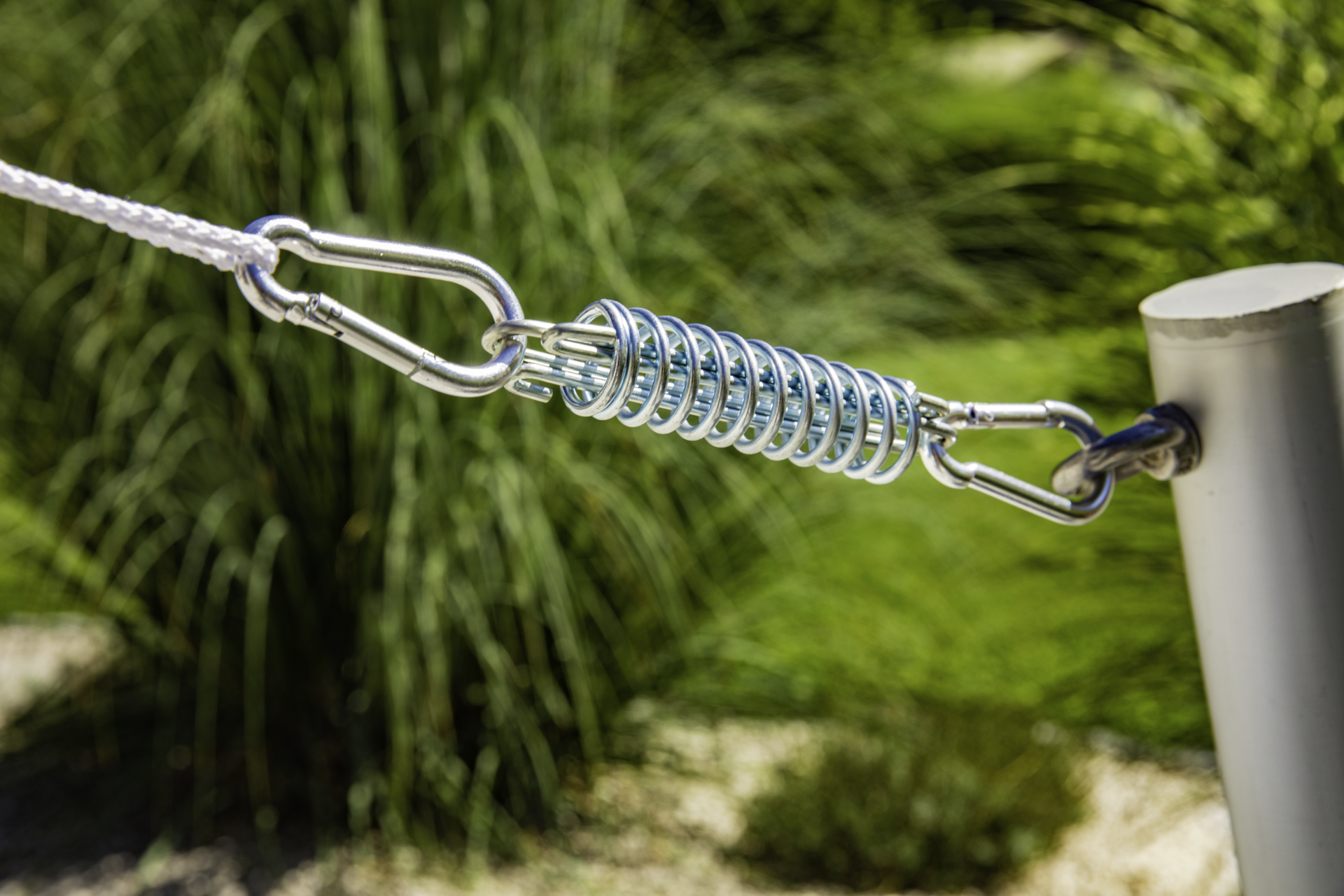 Wo auch immer ein Sonnensegel angebracht werden soll, mit dem praktischen Zubehör wird der Aufbau zum Kinderspiel - einfach spannen, einhaken, fertig. Aus Edelstahl.