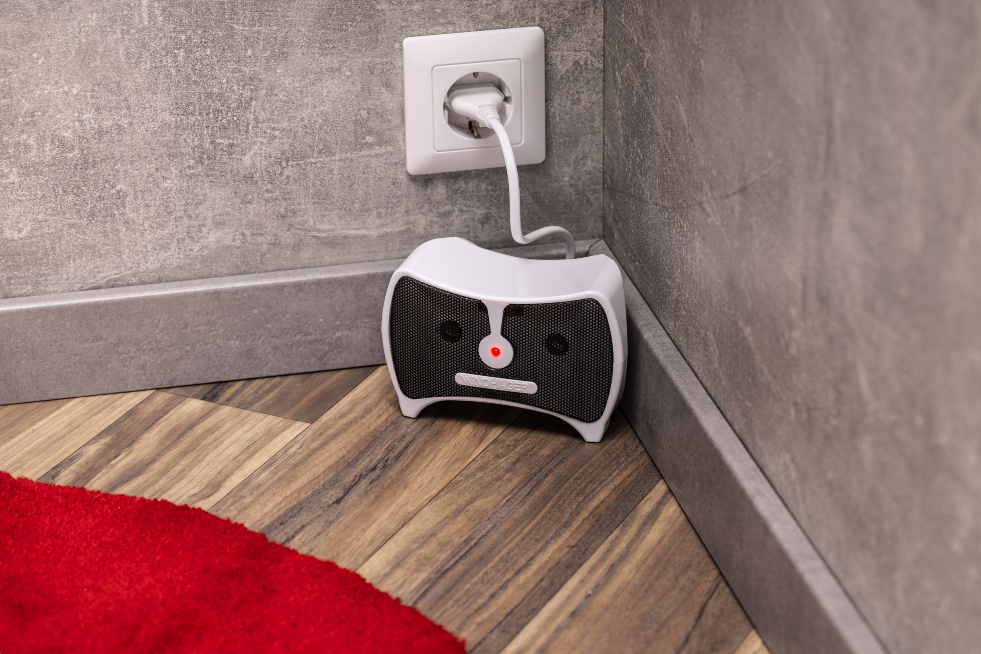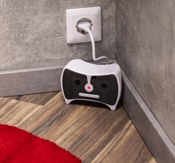 Das Gerät wird mit dem mitgelieferten Netzteil an das Stromnetz angeschlossen und ist anschließend sofort einsatzbereit. Dank der kompakten Größe kann das Gerät gut in einer Zimmerecke oder auf einem Möbelstück platziert werden. Wichtig ist, dass der Vertreiber nicht von Vorhängen oder Möbeln verdeckt wird, da dadurch die Wirksamkeit eingeschränkt wird. Bei optimaler Platzierung schützt das Gerät einen Bereich von bis zu 30 m².