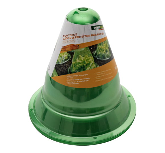 Ein eigener Garten bedeutet viel Arbeit. Umso ärgerlicher ist es, wenn die mühsam gezogenen Pflanzen von Umwelteinflüssen zerstört werden. Pflanzenhüte bieten hier eine einfache aber wirksame Lösung, denn sie schützen vor Schnecken, Vögeln, Hagel und Frost. Der Umwelt zuliebe wird kein schädigendes Material, wie beispielsweise Kupfer, verwendet. Der kegelförmige Pflanzenhut besteht aus einem wetterbeständigen, recycelbaren PET-Kunststoff. Die spezielle Form ermöglicht den Pflanzen während der gesamten Wachstumsphase ein Schonklima. So wird, unabhängig von der Witterung, optimales Wachstum gewährleistet. Auch für Schnecken und Vögel stellen Pflanzenhüte eine unüberwindbare Barriere dar.