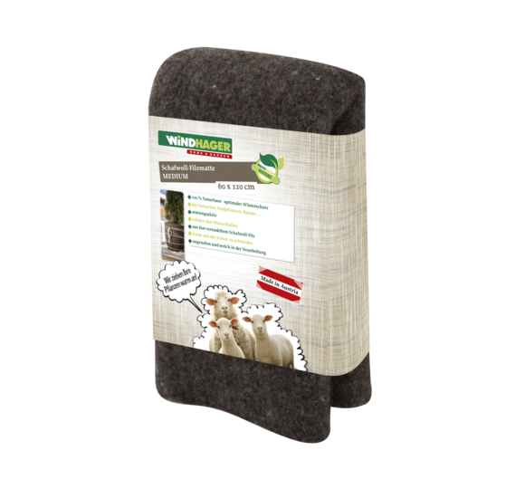 Die hochwertige Matte aus fest vernadeltem Schafwoll-Filz schützt Sträucher, Topfpflanzen oder Bäume zuverlässig vor Kälte, Frost und Wind. Der nachwachsende Naturrohstoff Schafwolle besitzt beste wärmeisolierende Eigenschaften und ist extrem atmunsgaktiv – die Dämmeigenschaft bleibt erhalten auch wenn die Filzmatte nass wird, da Luftpolster zwischen den Fasern bestehen bleiben. Hergestellt in Österreich.