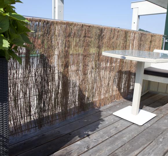 Genau so fügt sich Heidekraut als Sichtschutz in den Garten ein. Ein Produkt, das nicht behandelt werden muss und extrem witterungsbeständig ist. Es eignet sich ideal als Sicht- oder Windschutz.