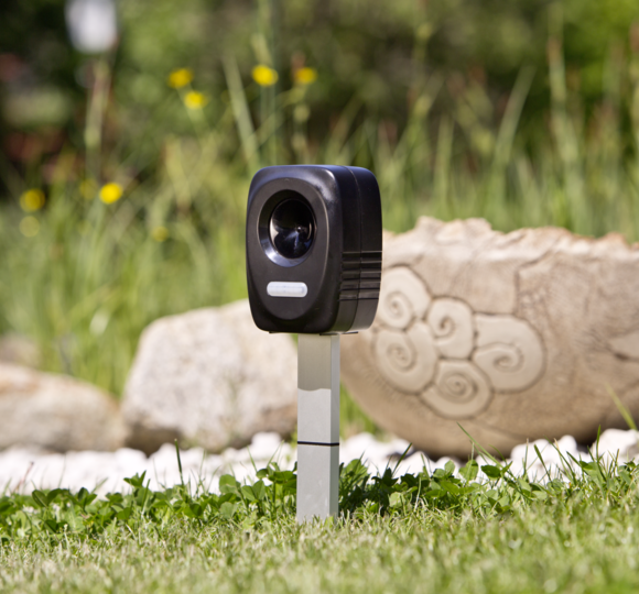 Als ersten Schritt müssen 3x AA-Batterien eingesetzt werden, diese sind nicht im Lieferumfang enthalten. Um den Tiervertreiber anschließend aufzustellen, haben Sie zwei Möglichkeiten. Sie können das Gerät entweder mit dem enthaltenen Erdspieß in den Rasen stecken oder an der Aufhängevorrichtung anbringen. Das Gerät sollte nicht verdeckt sein, denn so wird die Wirkung eingeschränkt. An der Unterseite können Sie das Gerät einschalten und einen der drei Betriebsmodi wählen. Schon macht sich der GUARD an die Arbeit und Ihr Garten ist geschützt.