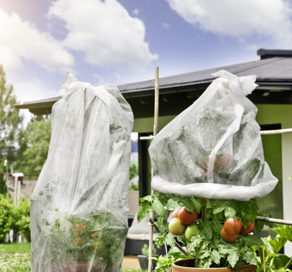 Zum Schutz der Tomaten vor Schädlingen und Kälte.