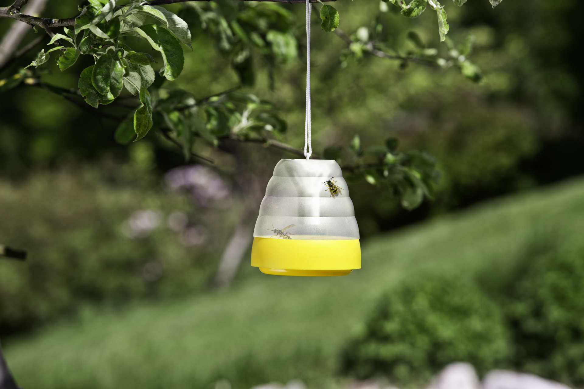 Genießt man einen sonnigen Tag mit einem erfrischenden Getränk oder einem Eis im Freien, so sind Wespen meist nicht weit. Auch Fliegen lassen sich ungern eine Mahlzeit im Garten, der Terrasse oder dem Balkon entgehen. Die Insekten sind nicht nur störend, ein Wespenstich kann auch schnell gefährlich werden. Hier kommt die Windhager Fliegen- und Wespenfalle zum Einsatz. Sie rettet Ihnen Ihre Sommertage draußen. Praktischer Nebeneffekt: Auch Mücken verirren sich in die Falle.