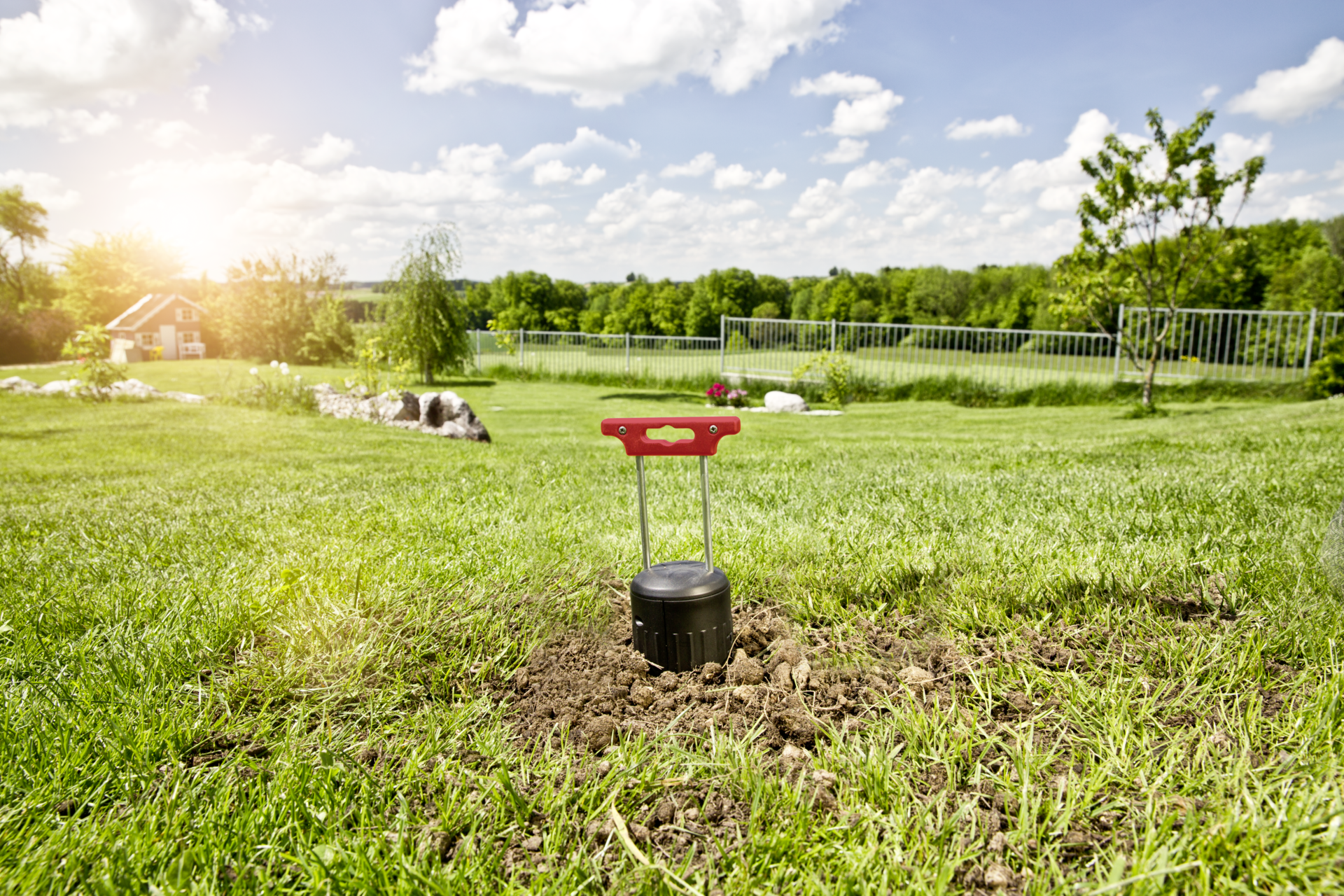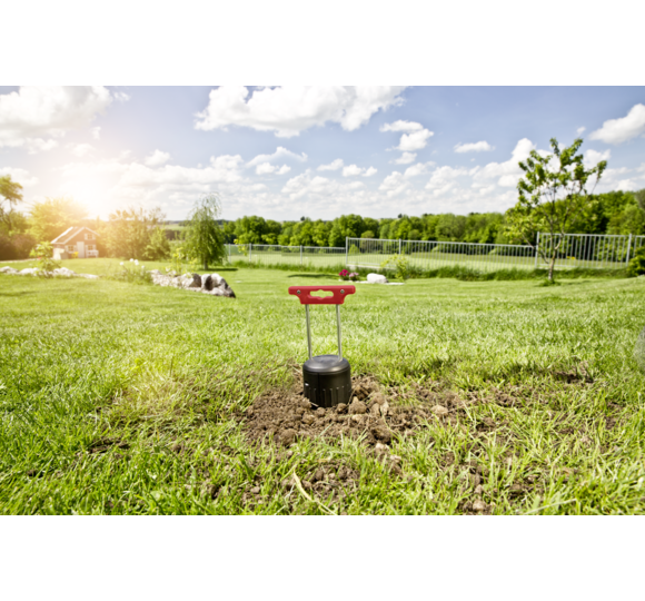 Mit dem Windhager Sondierstab VOLE TRAP ACCESSORIES (Art.-Nr.: 05316) dort, wo Gänge vermutet werden, in die Erde stechen. Ist kein Widerstand zu spüren, liegt hier vermutlich einer der verzweigten Wühlmausgänge. Diese Stellen mit den Windhager Markierflaggen (Art.-Nr.: 05317) markieren. Liegen diese Stunden später im Gras, wird der Tunnel frequentiert. Genau an diesen Stellen sollten Wühlmausfallen positioniert werden.