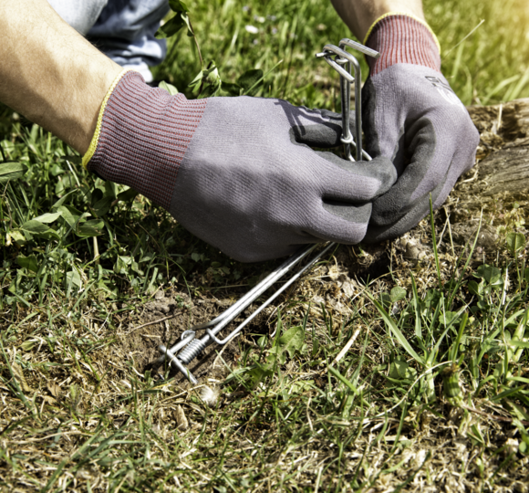 Mit dem Windhager Sondierstab VOLE TRAP ACCESSORIES (Art.-Nr. 05316) dort, wo Gänge vermutet werden, in die Erde stechen. Ist kein Widerstand zu spüren, liegt hier vermutlich einer der verzweigten Wühlmausgänge. Diese Stellen mit den Windhager Markierflaggen (Art.-Nr. 05317) markieren. Liegen diese Stunden später im Gras, wird der Tunnel frequentiert. Genau an diesen Stellen sollten Wühlmausfallen positioniert werden.