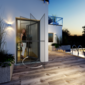 • Türen mit fix montiertem Sonnenschutz wie z.B. Rollladen, Raffstore, Außenjalousie (Einbautiefe beachten!)