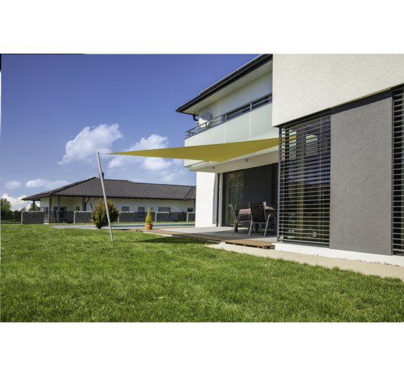 Angenehme Beschattung durch Sonnensegel hat außerdem den Vorteil, dass kein kostbarer Platz als Stellfläche verloren geht, wie bei einem Sonnenschirm. Und im Winter kann das Sonnendach einfach abgenommen und absolut platzsparend verstaut werden. Sonnensegel eignen sich nicht nur für Terrassen, auch am Balkon, auf der Wiese, über dem Pool oder der Sandkiste lässt sich so ein tolles Sonnendach zaubern. Einzige Voraussetzung: das Segel muss an 3 Punkten befestigt werden können.
