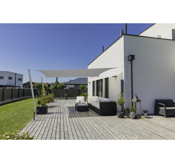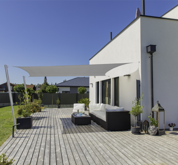 Wohltuender Schatten auf Terrasse, Balkon und im Garten wird mit steigenden Temperaturen immer wichtiger. Eine praktische Lösung hierfür sind Sonnensegel. Sie sind schnell und leicht zu befestigen, im Vergleich zu einer Pergola oder ähnlichem kostengünstig und können jederzeit wieder abgenommen werden. Sind die Verankerungen erst einmal angebracht, kann jederzeit ein Sonnensegel in einer anderen Farbe gespannt werden – für einen völlig neuen Look. Die sanften Farbtöne reflektieren die Sonne nicht so stark und blenden daher nicht.