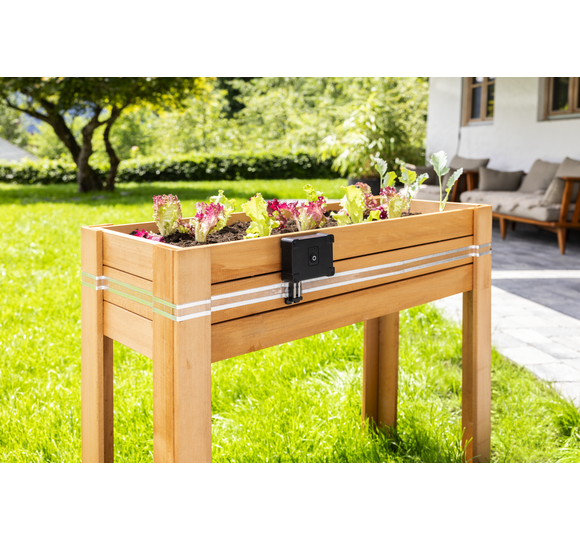 - Trägerplatte mit beigelegtem Befestigungsmaterial am Hochbeet anbringen